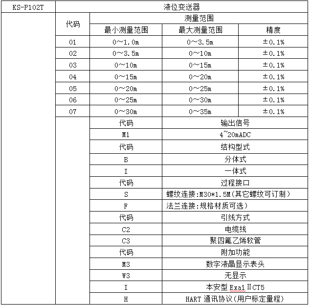 KS-P102T系列液位變送器選用高精度、高穩(wěn)定性擴(kuò)散硅壓力傳感組件,通過高可靠性的放大電路及精密溫度補(bǔ)償,將被測液體的液位信號轉(zhuǎn)換成4~20mADC標(biāo)準(zhǔn)電信號。高質(zhì)量的傳感器、精湛的封裝技術(shù)以及完善的裝配工藝確保了該產(chǎn)品的優(yōu)異質(zhì)量和最佳性能。本產(chǎn)品為分體式結(jié)構(gòu)型式,并有電纜、防腐型兩種介質(zhì)測量類型。防腐型產(chǎn)品可以抵御多種腐蝕性液體的侵蝕,能夠最大限度的滿足客戶的需要。 KS-P102T系列液位變送器產(chǎn)品分為普通型和本質(zhì)安全防爆型兩種型式,防爆型產(chǎn)品能夠廣泛用于工業(yè)現(xiàn)場中各種惡劣及危險場所。